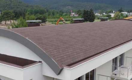 BARDOLINE çatıya kolayca uyum sağlar.Başka malzemelerle kaplanması çok zor, hatta imkansız olan karmaşık çatı formlarına, kubbe, tonoz gibi eğrisel yüzeylere adapte edilebilir. Kolay ve hızlı uygulanır.